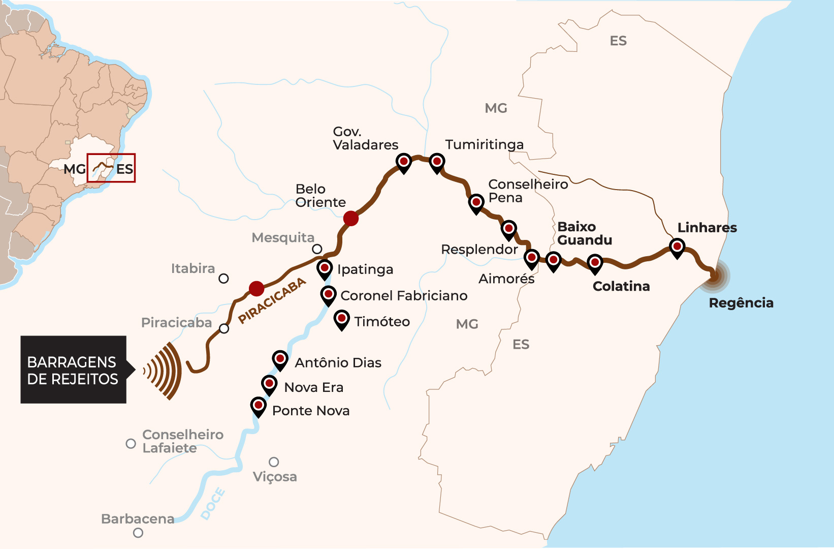 ➡️RIO DE LAMA E LUTA | Infográfico mostra o caminho da lama no Rio Doce