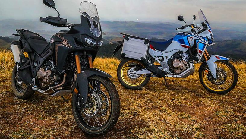 Na Europa, a bigtrail da Honda recebeu uma atualização significativa e aumento na cilindrada, mas o Brasil recebeu a geração anterior, que ganhou novidades como a adoção do acelerador eletrônico, um controle de tração foi aperfeiçoado e modos de pilotagem. O painel segue em LCD diferentemente do TFT da nova geração e exibe mais informações. O motor permanece com 999,1 cm³ de cilindrada, no entanto, está mais forte: 94,6 cavalos a 7.500 rpm, com torque máximo de 9,7 kgfm a 6 mil rpm. A Africa Twin ganhou uma versão inédita, a Adventure Sports, com suspensões de curso mais longo e tanque de combustível maior - 24,2 litros ante 18,8 litros na standard. Foto: Divulgação