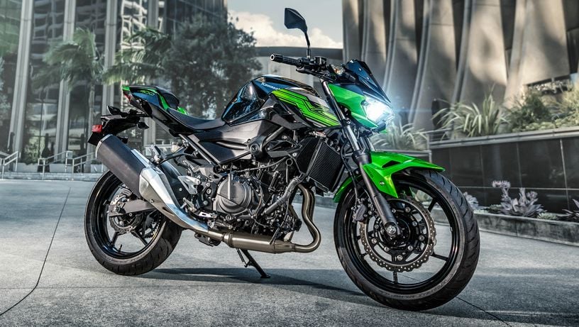 A Z400 foi apresentada oficialmente durante o Festival Duas Rodas, que aconteceu de 29 de agosto a 1 de setembro no Autódromo de Interlagos, na capital paulista. Ela compartilha praticamente todos os itens com a Ninja 400. O motor de 399 cm³ gera os mesmos 48 cavalos de potência a 10 mil giros e 3,9 kgfm a 8 mil giros. Números suficientes para empurrar a Z400, que pesa 167 quilos em ordem de marcha. Foto: Divulgação