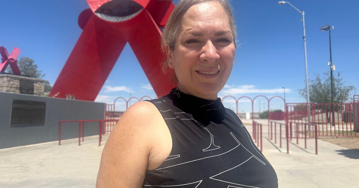 Enquanto motoristas aguardam no trânsito perto da Ponte das Américas, que liga o México aos EUA, Silvia Delgado ziguezagueia entre os carros distribuindo panfletos.>