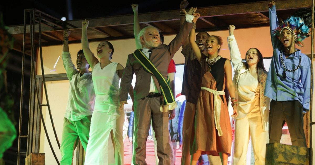 "Não dá para falar da história do Lula, que é um líder político, sem falar de política. Então, obviamente, a gente fala de política, mas a gente não faz campanha política. A gente não está pedindo voto", disse o enredista da escola, Igor Ricardo, em entrevista à agência Associated Press, durante o desfile.>