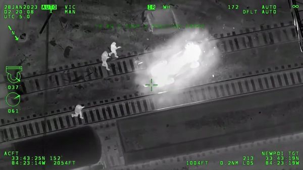 O agente acionou colegas via rádio, dando início a uma perseguição com direito a helicóptero com câmeras de calor. Segundo a emissora WSB-TV, a fuga maluca terminou apenas quando o suspeito, identificado como Mickal Parker, perdeu o controle da direção e bateu o veículo contra trilhos ferroviários, capotando e ficando preso na linha.>
