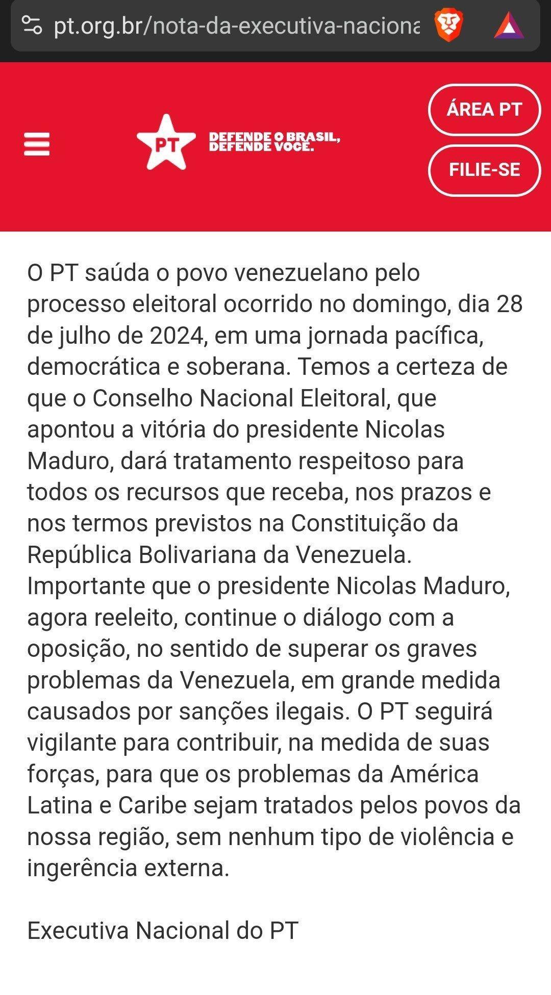 O presidente Luiz Inácio Lula da Silva (PT) se pronunciou pela primeira vez nesta terça-feira (30) sobre o impasse na eleição presidencial na Venezuela, realizada no domingo.>