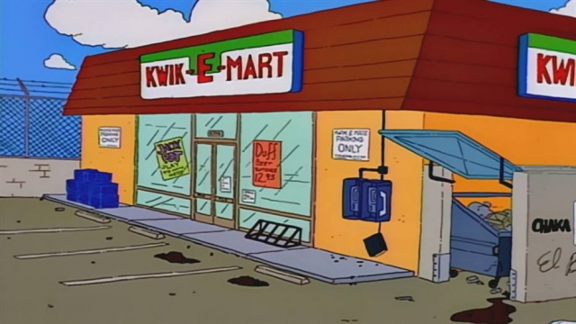 O mercadinho Kwik-E-Mart é um dos cenários mais tradicionais da animação Os Simpsons. O estabelecimento gerenciado por Apu, personagem que foi criticado em abril de 2018 por perpetuar estereótipos sobre indianos em produções dos Estados Unidos, agora tem uma versão de verdade localizada na estância turística de Myrtle Beach, nos Estados Unidos.>