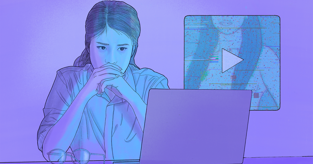 Mas, em março do ano passado, sua vida virou de cabeça para baixo quando um aluno mostrou a ela uma foto do seu rosto anexado a um corpo nu, uma imagem que havia sido criada com a tecnologia de deepfake.>