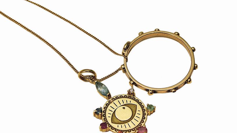 O pingente da Carolina Neves, que é uma das minhas maiores inspirações, e o anel da minha avó, que representa minhas duas avós, minhas saudades diárias.