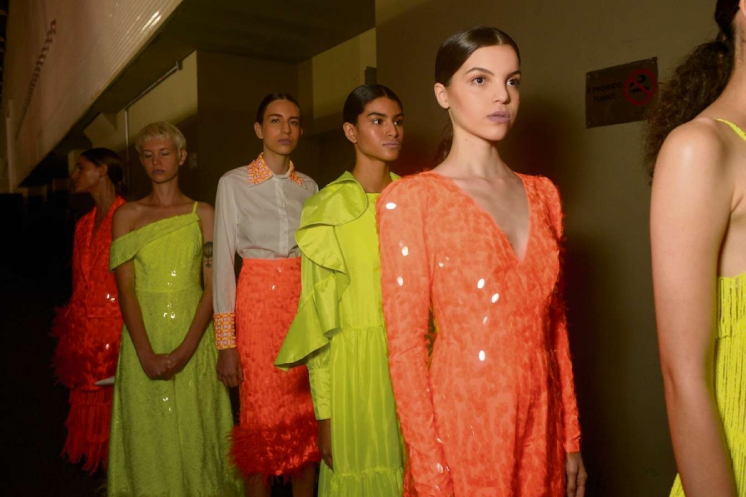 O Neon permanece forte nas próximas temporadas, em vestidos, biquínis e em conjuntos de blazers com bermuda justa de lycra, aquela muito usada nos anos 80 para fazer ginástica. O laranja, amarelo, verde, rosa e azul foram os tons mais vistos. Marcas como Patricia Bonaldi e Água de Coco mostraram a tendência em seu desfile.>