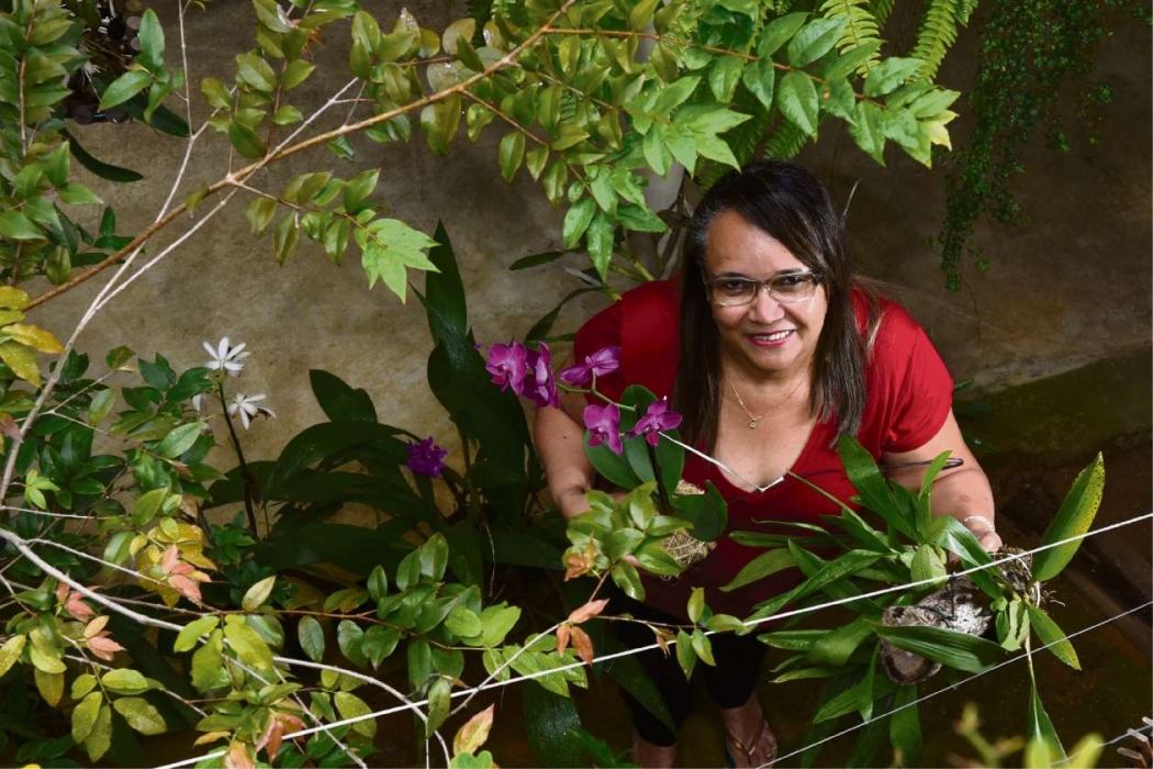 Isabela Azeredo Silva, 48 anos, dona de um orquidário em Guaranhuns, Vila Velha é grata as plantas que se dedica diariamente. Estava com depressão e tomava 12 comprimidos todos os dias, mas, aos poucos, seu tempo foi tomado pelo afeto presente no contato cotidiano com as orquídeas.>