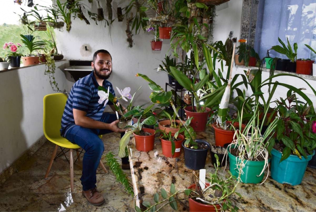 E você acha que cuidar de orquídeas é coisa de pais a avós? Nada disso! Jovens também foram arrebatadas por essa paixão. O designer gráfico Alexssandro Mello Furtado, de 27 anos, natural de Conceição da Barra, região Norte do Estado, ganhou sua primeira muda aos 10 anos de idade, e hoje cuida de mais de 40 plantas na varanda de sua casa, em Goiabeiras, Vitória.>