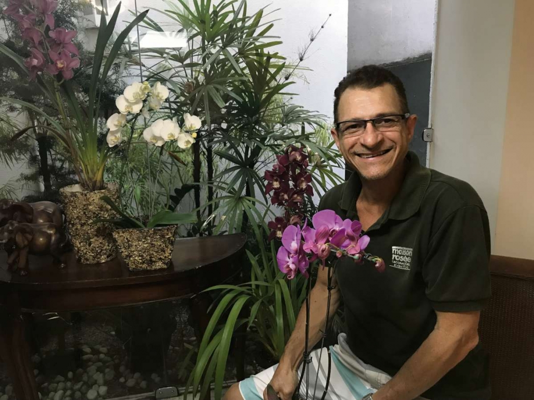 Eu tinha uns 10 anos quando minha vizinha me deu a primeira orquídea. Ela ficou sete anos para florescer pela primeira vez, mas quando começou foi um espetáculo. Na casa dela (da vizinha) vi que aquelas plantas eram diferentes. Plantadas em madeira, penduradas em árvores e algumas muito pequenas estavam floridas. Fiquei encantado, relembrou o jovem apaixonado.>