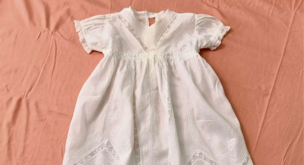O vestido de batismo da minha mãe, que passou para mim e minha filha. O valor sentimental tornou-se ainda maior quando descobri que foi feito à mão pela minha avó.>