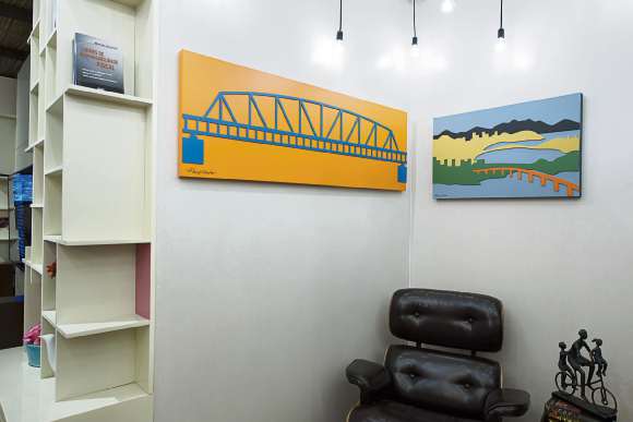 Dutra tem um espaço dentro da Casa Cor Espírito Santo há dez anos. Acho bacana poder mostrar nosso trabalho, nossa etnografia, nossas paisagens. Mostrar a panela de barro, a casaca, a ponte Florentino Avidos, a Pedra da Cebola. Comecei fazendo artes do Convento da Penha, de Vila Velha, e depois passei a valorizar Vitória. Às vezes aparecem clientes querendo decorar a casa com cenas de Nova Iorque, de Paris, mas eu sempre falo que temos lugares tão lindos! Nossas paisagens não deixam a desejar para nenhum lugar do mundo, então por que não aproveitar? As pessoas achavam que por ser local seria ruim ou de baixa qualidade, o que não é verdade. Precisamos valorizar o capixabismo, valorizar nossas paisagens, nossos pontos turísticos, nossa moda, nossa culinária. Precisamos entender que o capixaba tem características fortes e tem muito do que se orgulhar, ressalta.>