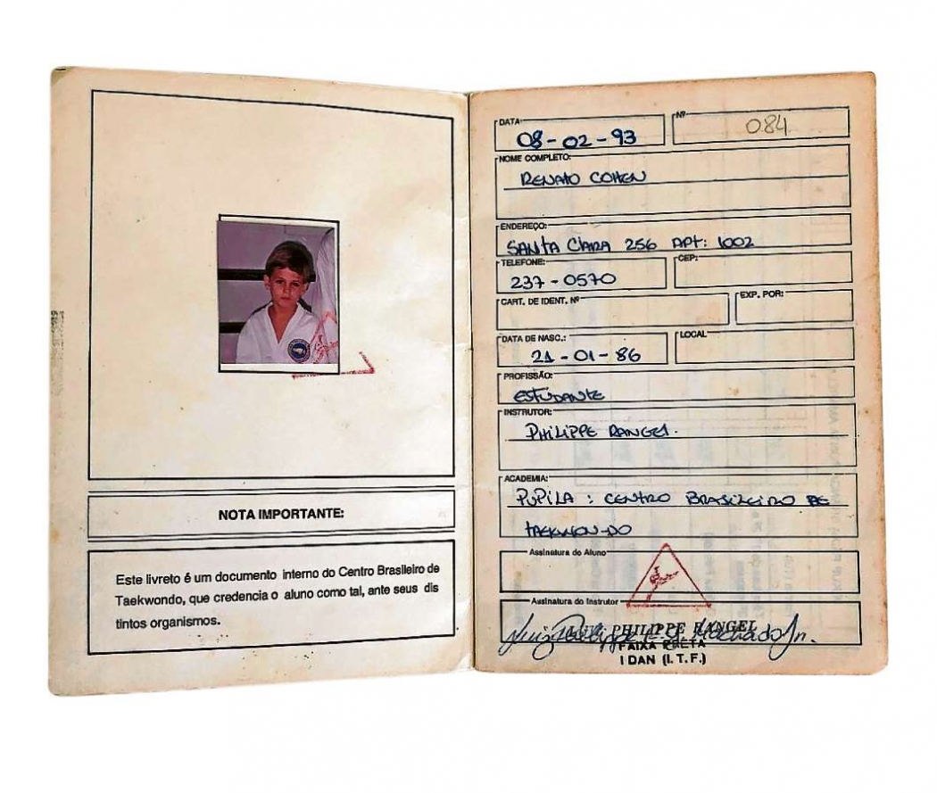 A caderneta do taekwondo. Comecei com 6 anos e hoje sou faixa-preta. Representa muito para mim. Os princípios sempre foram levados da arte marcial para a vida. A minha formação foi muito feita no esporte.>