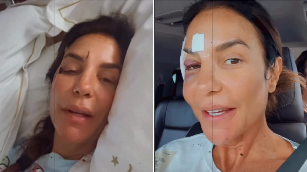 "Essa noite, tive uma diarreia muito intensa, de uma virose que peguei, e uma dor de cabeça muito forte. Passei a noite indo ao banheiro. Às 7h da manhã, desidratei por causa da diarreia, a minha pressão baixou e eu desmaiei, caí no chão com tudo, inclusive tive um corte [no olho e na testa]. Estou bem, assistida por médicos muito competentes. Estou bem e vou ficar maravilhosa". >